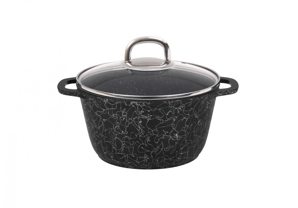 Кастрюля 4,5л со стеклянной крышкой, АП линия "Грация" (черный/серебро) кчс45а