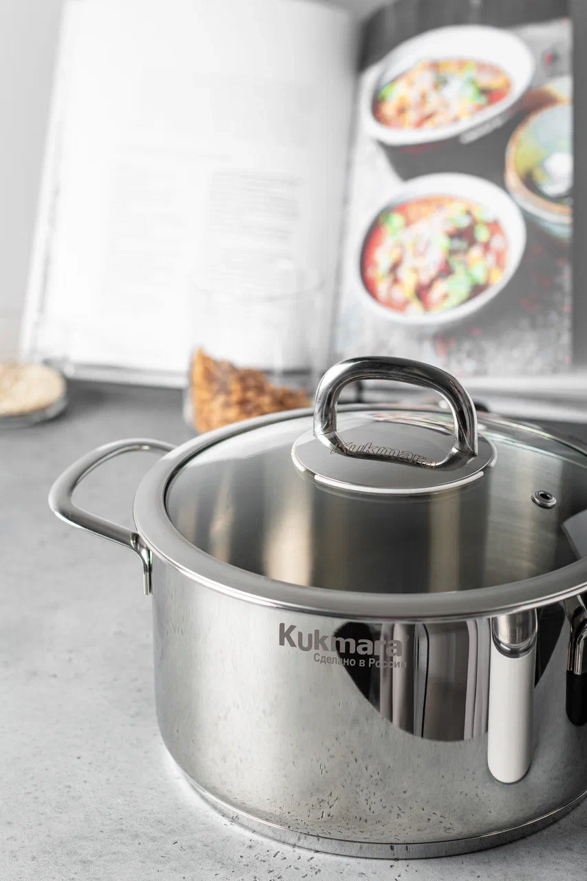 Линия посуды из нержавеющей стали Kukmara предназначена для тех, кто ценит безупречное качество и является сторонником приготовления здоровой пищи.Посуда имеет плоское, утолщенное дно, состоящее из 3-х слоев металла: индукционного, термоаккумулирующего и проводящего, которое равномерно распределяет тепло и препятствует подгоранию пищи. Это позволяет использовать посуду на любых видах плит, в том числе индукционных и стеклокерамических. При этом сокращается время на приготовление пищи, что позволяет не только сэкономить расход электроэнергии и газа, но и сберечь немало времени и сил.