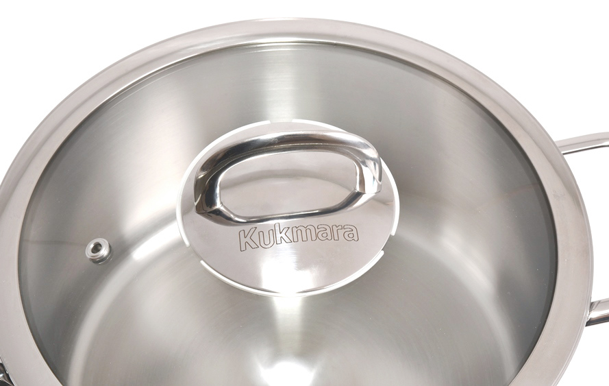 Линия посуды из нержавеющей стали Kukmara предназначена для тех, кто ценит безупречное качество и является сторонником приготовления здоровой пищи.Кастрюля хорошо подходит для варки, тушения и томления, и блюда в ней получаются сочными и ароматными. Яркая коллекция Safia придется по душе тем, кто любит окружать себя функциональными, но при этом стильными и актуальными предметами.Посуда имеет плоское, утолщенное дно, состоящее из 3-х слоев металла: индукционного, термоаккумулирующего и проводящего, которое равномерно распределяет тепло и препятствует подгоранию пищи. Это позволяет использовать посуду на любых видах плит, в том числе индукционных и стеклокерамических. При этом сокращается время на приготовление пищи, что позволяет не только сэкономить расход электроэнергии и газа, но и сберечь немало времени и сил.