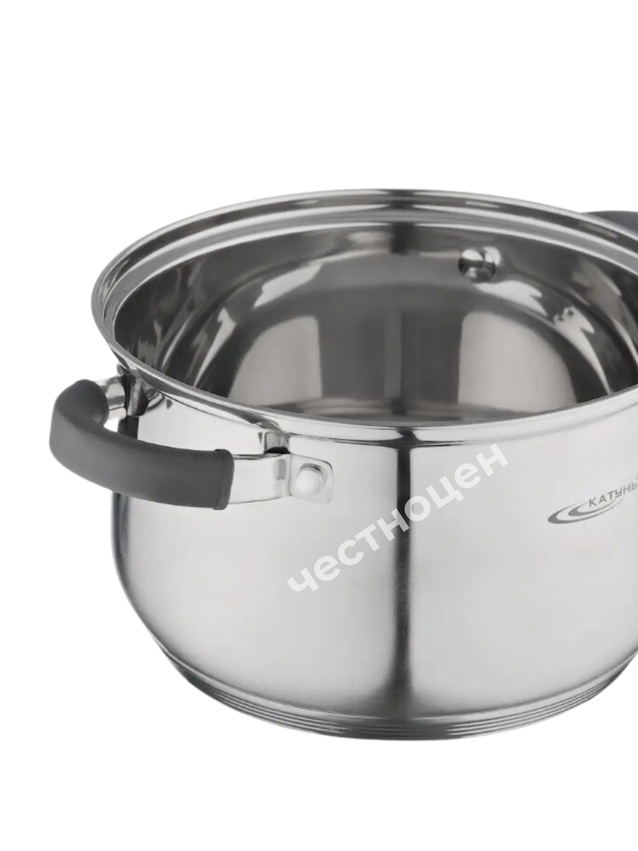 Посуда обладает отличными функциональными свойствами. Красивый внешний вид, удобные силиконовые ручки, крышка из закалённого стекла с паровыпуском, с металлическим ободком для плотного закрывания.