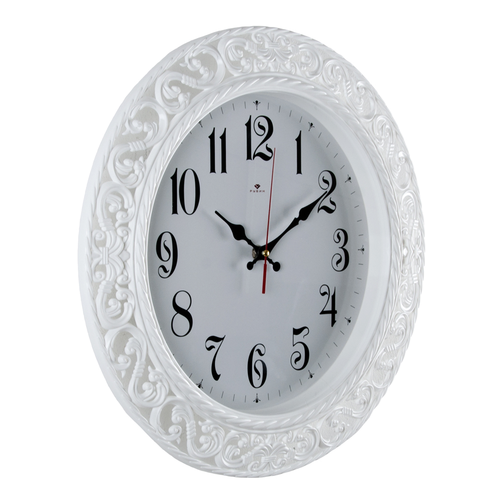 4051-103W Часы настенные "Рубин" Классика круг с узором d=39,5см, корпус белый