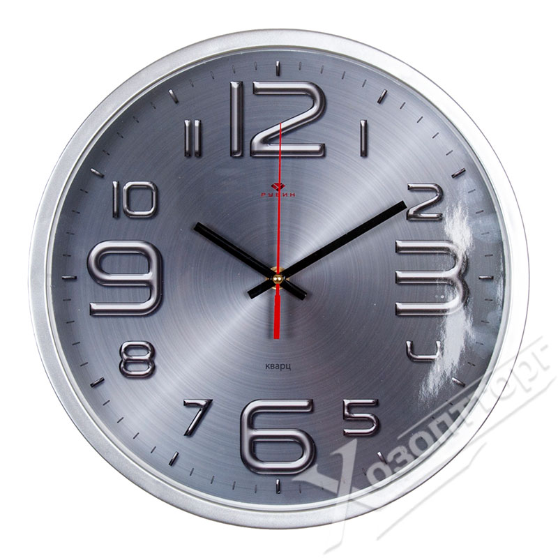 3027-21 Часы настенные "Рубин" Хром, круг d=30см. корпус серебрянный
