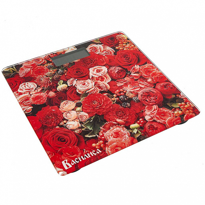 Напольные весы «Василиса» ВА-4010 оснащены LCD-дисплеем, ударопрочной стеклянной платформой, украшенной рисунком «Цветы» и прорезиненными ножками для большей устойчивости. Модель питается от двух ААА-батареек по 1,5 В (в комплект не входит), о заряде которых сообщит специальная индикация.