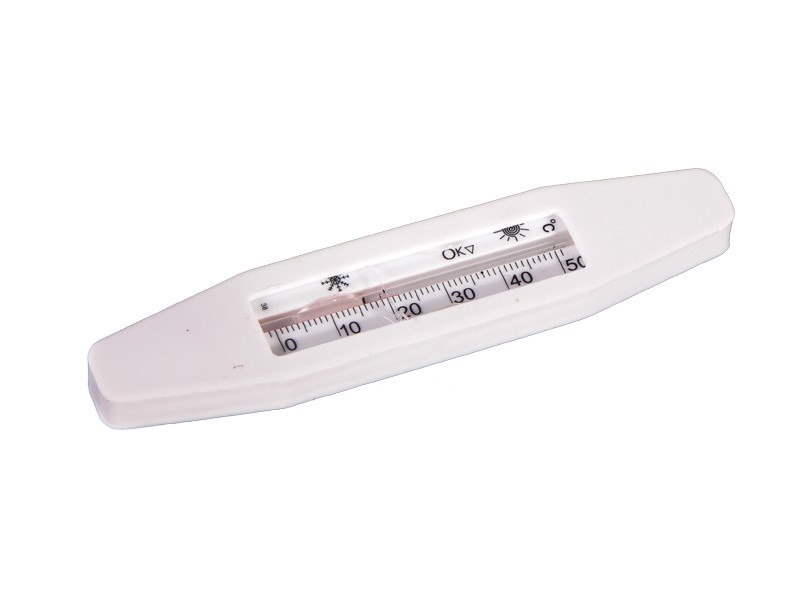 Регуляция температуры тела у ребенка отлична от таковой у взрослого. Поэтому руководствоваться надо не собственными ощущениями, а реакциями младенца. Вода не должна позволить ребенку расслабиться. Холодовое воздействие на кожу резко усиливает кровоток в мышцах, увеличивает их тонус. Активнее работает сердце, в кровь выбрасываются биологически активные вещества, стимулирующие обмен и повышающие сопротивляемость инфекциям. Повышение и понижение соответственно рекомендуемым температурам на 2-3 °C приводит к сильному высушиванию кожи, слабости, головокружению, проблемам с сердечно-сосудистой и эндокринной системой, обострение хронических заболеваний. Избежать такого рода неприятностей Вам помогут высокоточные термометры Рыбка ТБВ-1.Термометр для воды Рыбка ТБВ-1 предназначен для измерения температуры воды в диапазоне температур +10 +50 градусов С, цена деления 1 градус С