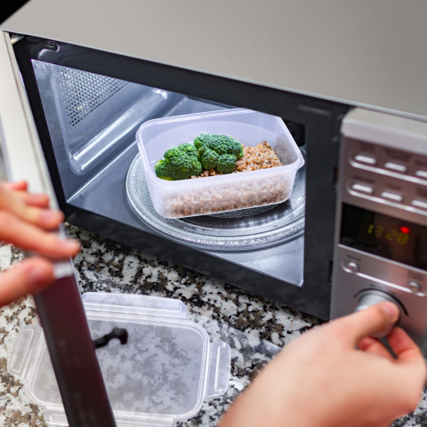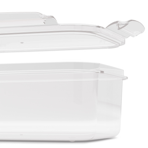 Прямоугольные ёмкости «Прайм» предназначены для хранения различных продуктов, транспортировки и разогревания (без крышки) готовых блюд. Изделия изготавливаются из качественного пищевого пластика, который безопасен для здоровья человека. Благодаря продуманной конструкции крышки и надежным защелкам создается 100% герметичность. Изделия с крышками удобно ставить друг на друга, пустые ёмкости тарируются по принципу матрёшки, позволяя экономно использовать пространство холодильника или кухонного шкафа. Долговечность ёмкостей делает их использование удобным и экологичным.