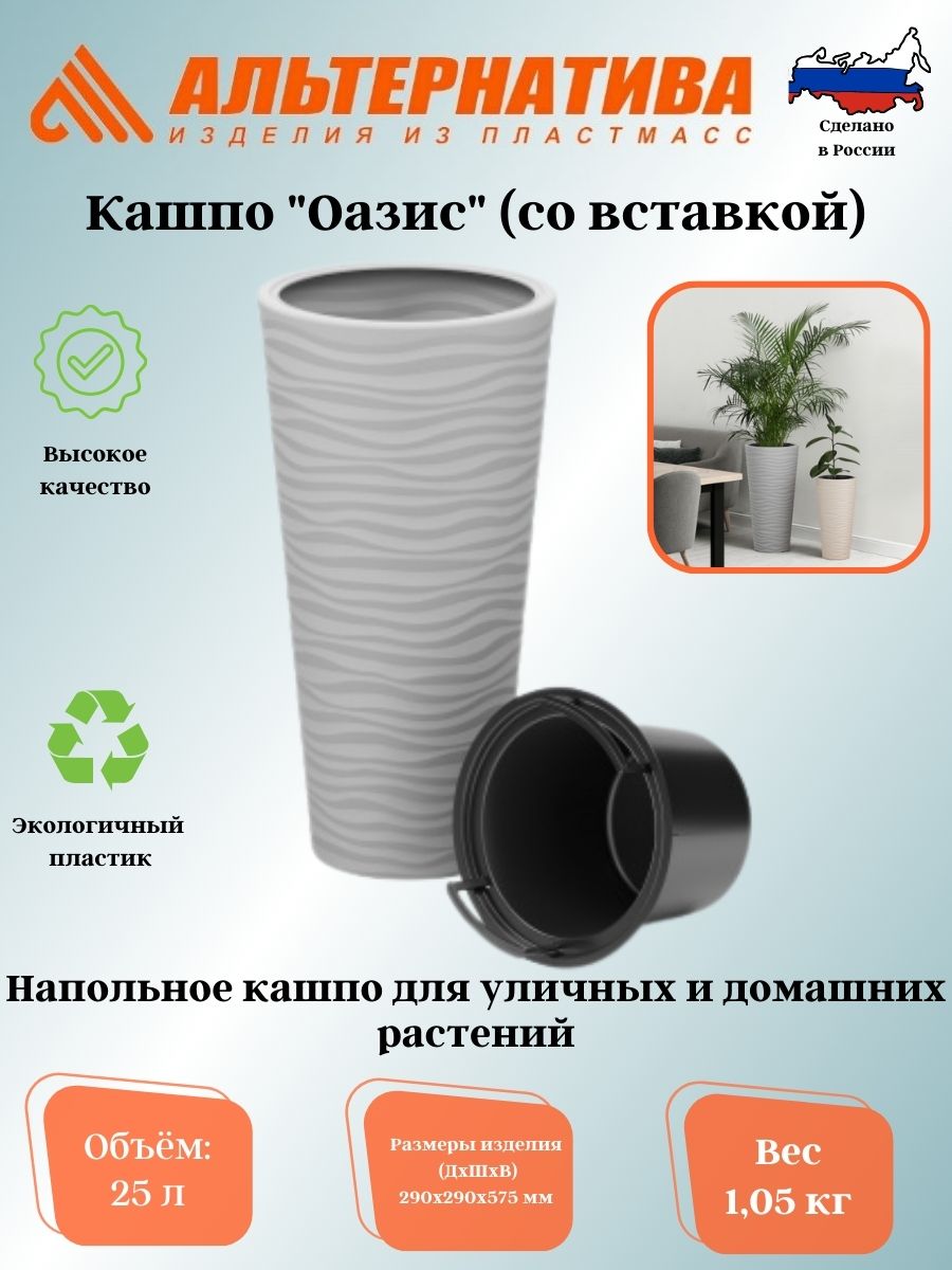 Кашпо "Оазис" 25л (со вставкой 5л)(серый) М8076
