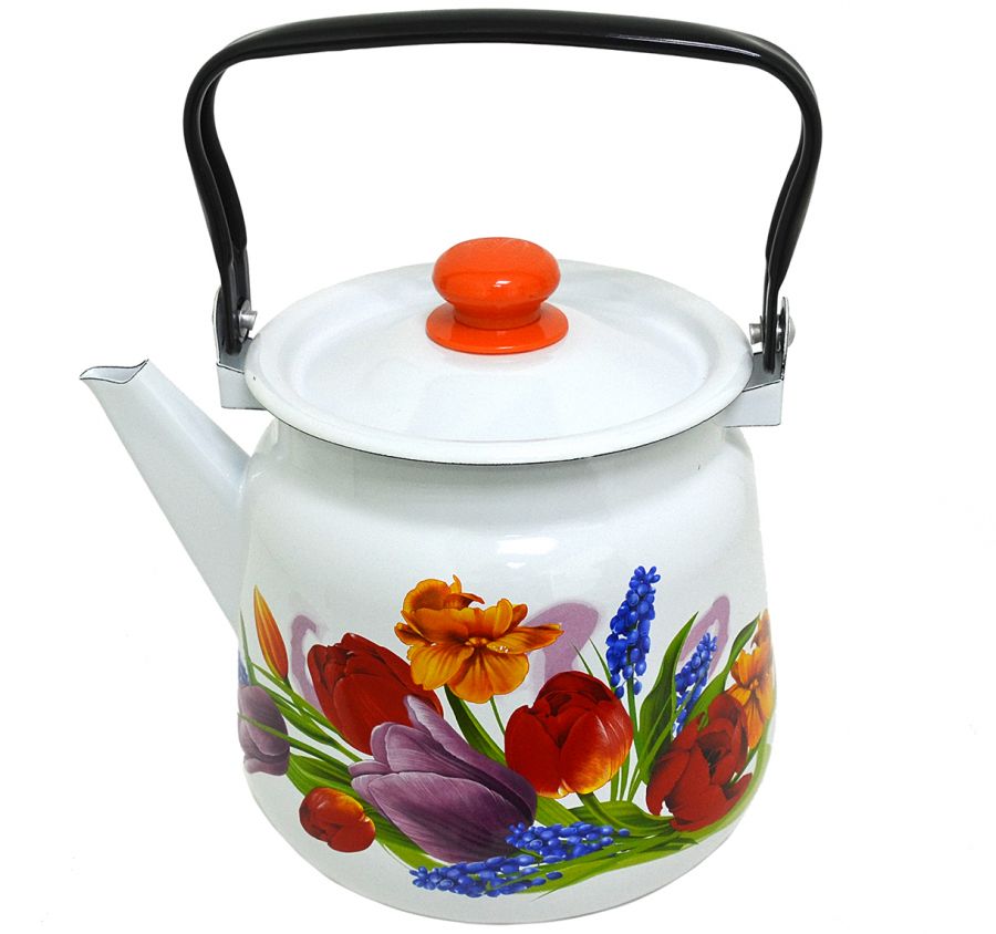 Чайник для плиты 3,5л сфер. Тюльпан Май белый с кнопкой С2716.3*119
