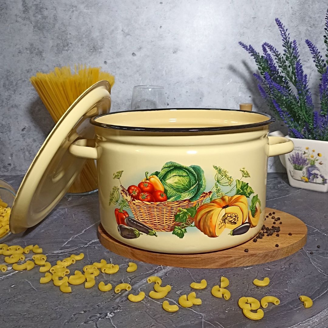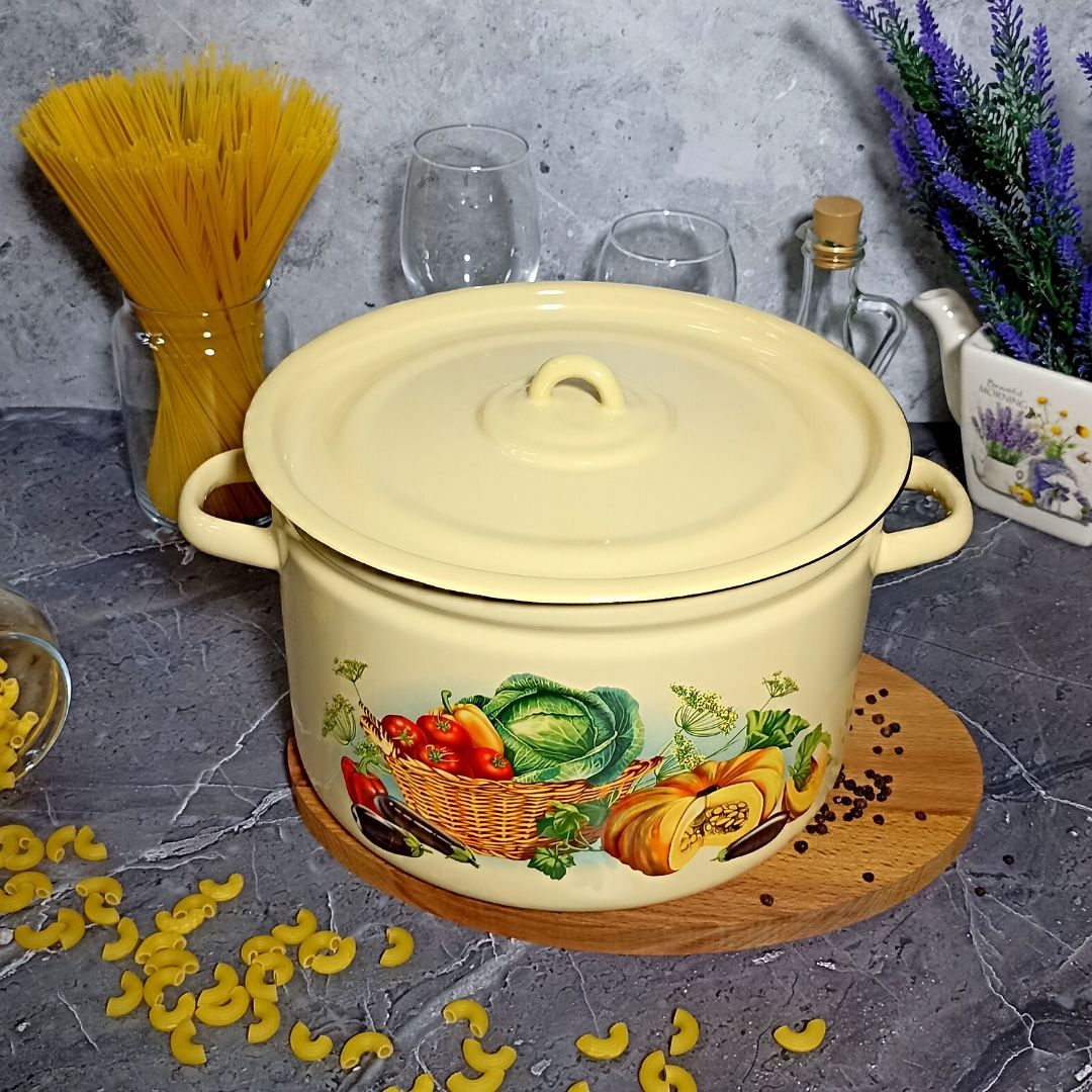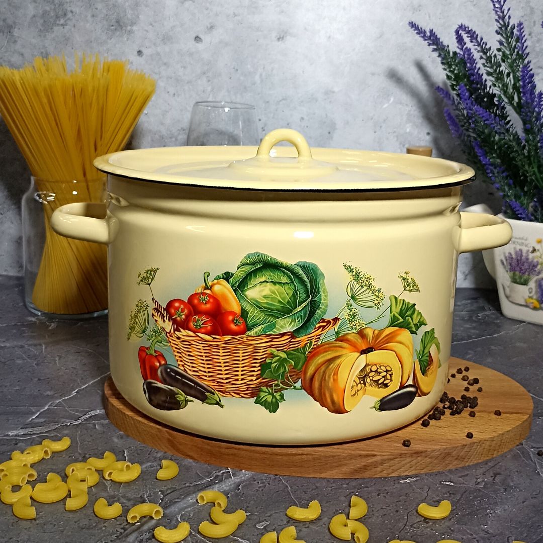 Кастрюля цилиндрическая с высоким корпусом изготовлена по ГОСТ 24788 из высококачественного стального проката, покрытого двумя слоями жаропрочной эмали. Эмалевое покрытие на основе силикатных фритт, являясь стекольной массой, не вступает во взаимодействие с продуктами, не искажает их вкусовые качества, не окисляется, при нагревании не выделяет опасные для здоровья человека соединения. Многослойное эмалевое покрытие практично, долговечно и устойчиво к появлению царапин и сколов. Прочный металлический корпус не деформируется в процессе эксплуатации и гарантирует эффективную тепловую обработку пищи.