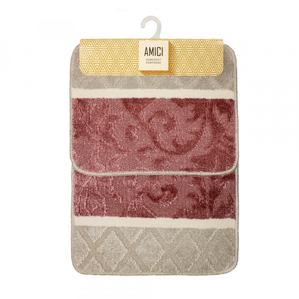 Комплект ковриков для ванной комнаты и туалета, коврик без U-образного выреза. Материал ворса: 100% полипропилен, плотность 600г/м2. Высота коврика 0,5 см. Латексное основание. Яркий и интересный дизайн, допускается машинная стирка.