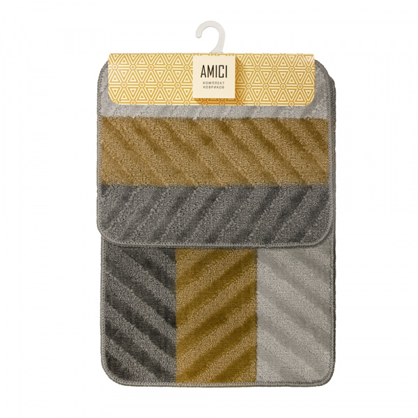 Комплект ковриков для ванной комнаты и туалета, коврик без U-образного выреза. Материал ворса: 100% полипропилен, плотность 600г/м2. Высота коврика 0,5 см. Латексное основание. Яркий и интересный дизайн, допускается машинная стирка.