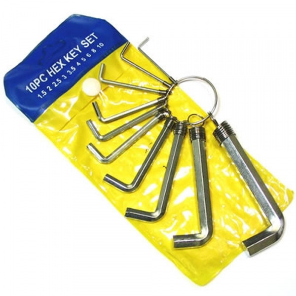 Если вы устали искать нужный вам по размеру шестигранник в огромной коробке с инструментами, то Вам просто необходим набор шестигранников! Все шестигранники соединены посредством кольца, чтобы весь набор всегда был под рукой. Ключи, выполненные из высококачественного металла, оптимизированы для работы в труднодоступных местах. Набор состоит из 10-ти шестигранников разного размера.