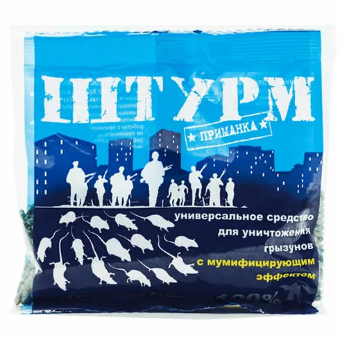 Общая характеристика: универсальная приманка для уничтожения мышей и крыс Способ применения: приманку размещают в местах, где обнаружены следы жизнедеятельности грызунов (на путях перемещения, вдоль стен, перегородок, возле нор). Раскладывают приманку в сухих местах под укрытиями в приспособленных емкостях или в специальных контейнерах. Приманку раскладывают по 30-50 г при обработках от крыс и по 10-20 г от мышей. Меры предосторожности: обработку проводить в специальной одежде и резиновых перчатках, избегать попадания в глаза, рот и на кожу. Во время работы запрещено курить, принимать пищу, пить, после работы необходимо вымыть руки теплой водой с мылом. Средство в местах его применения должно быть не доступно для детей и домашних животных.
