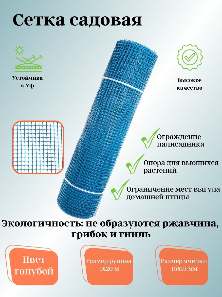 Садовая сетка квадратная 15х15 (1,0х20) ПРОФИ голубой
