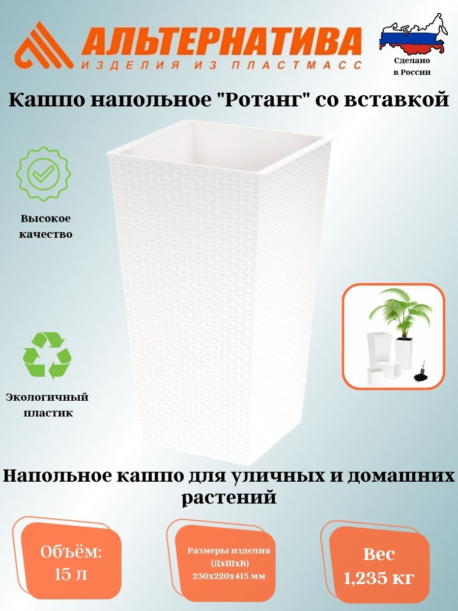 Кашпо напольное "Ротанг" 230х220х415мм (со вставкой)(белый) М6825