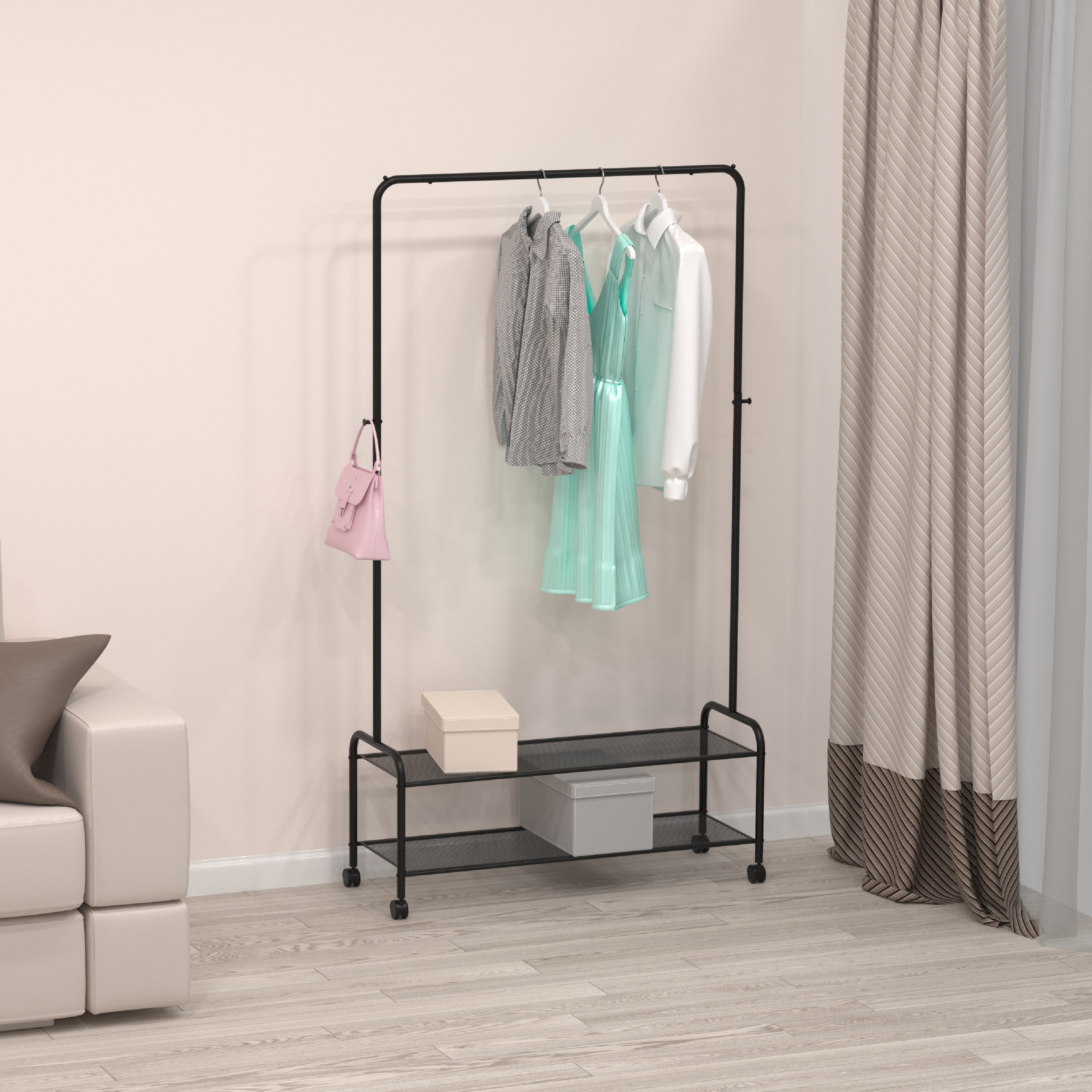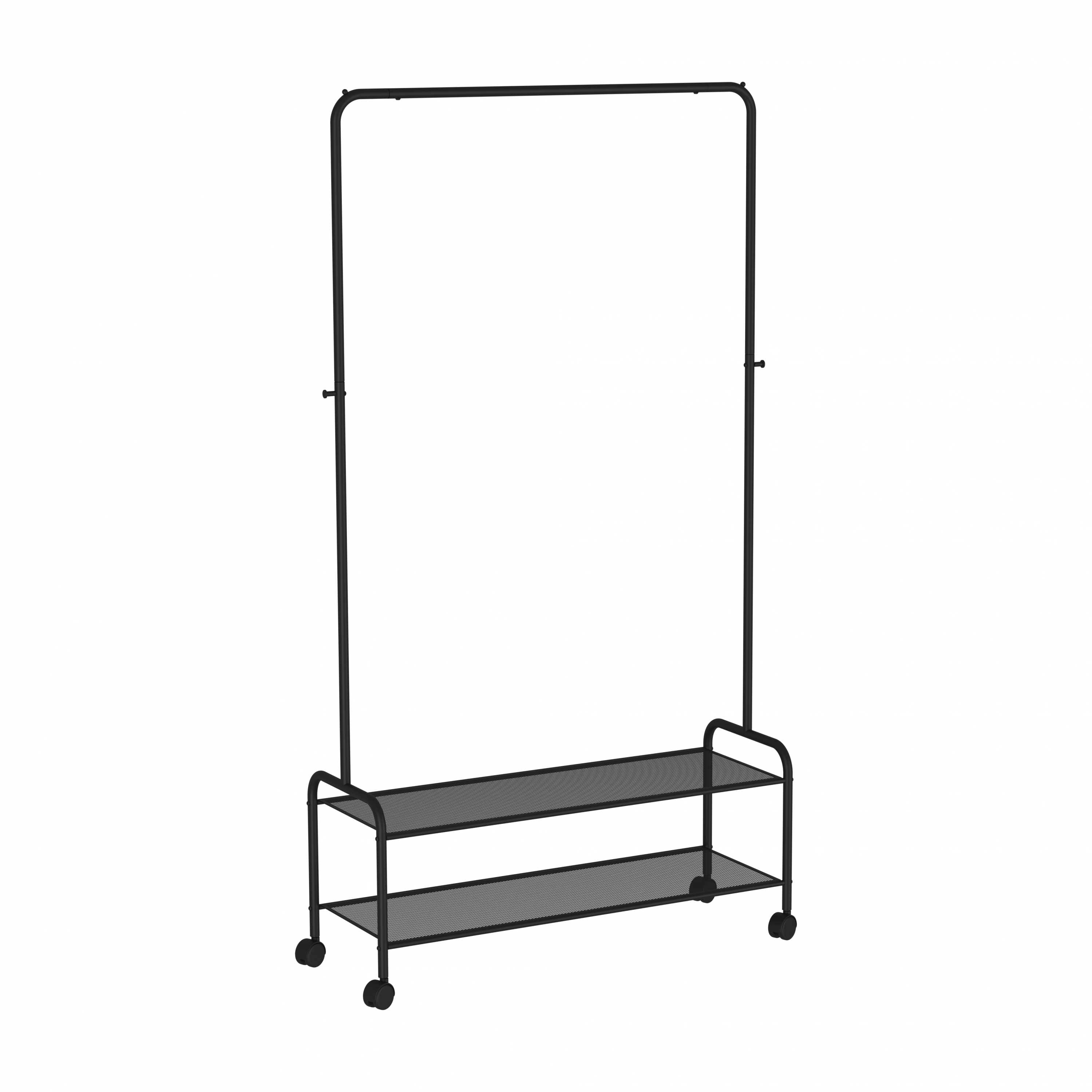 Вешалка гардеробная "Валенсия 32М" с двумя полками, на колёсах (VALENCIA 32M clothes rack) Черный