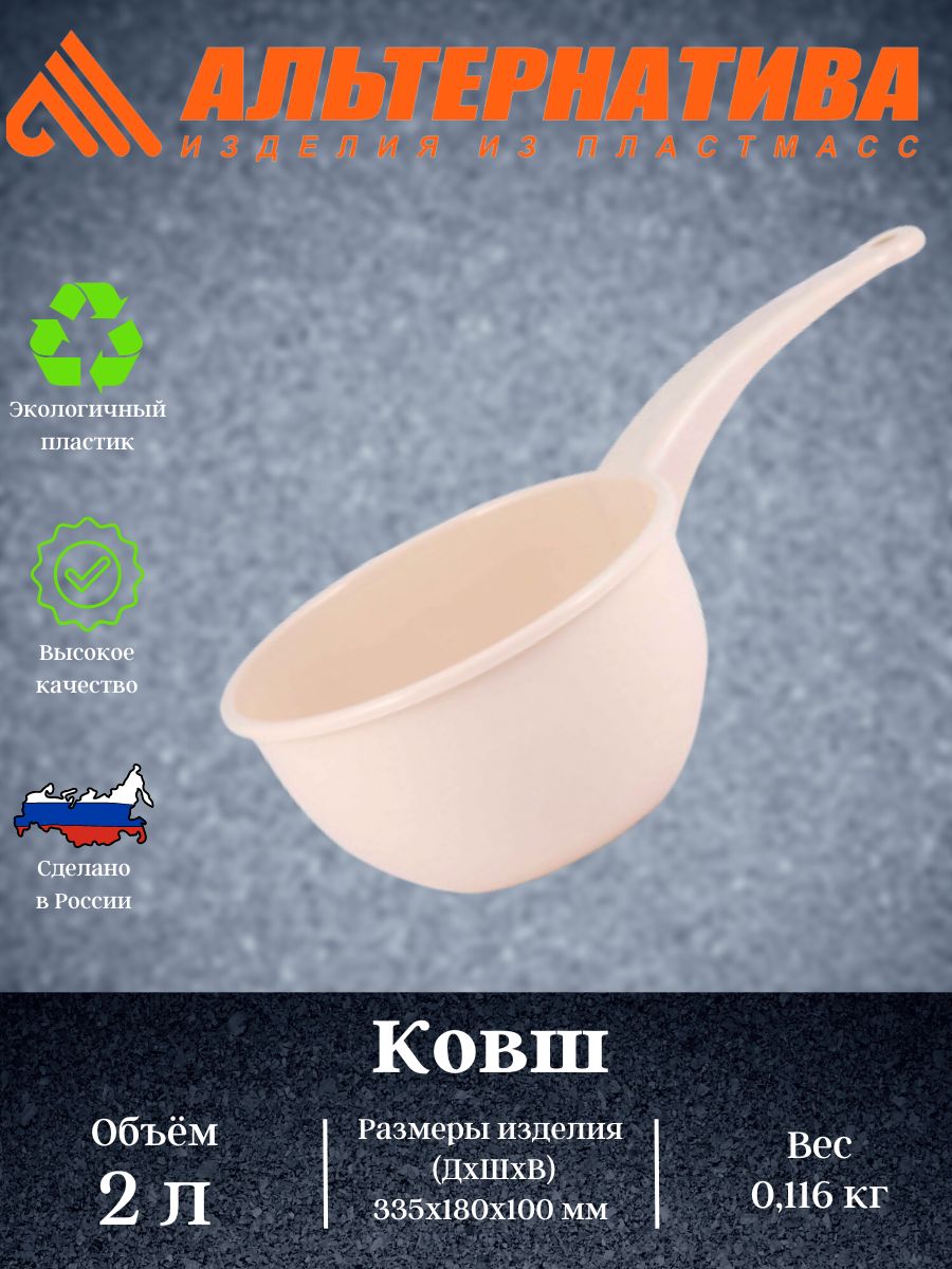 Ковш подойдет для зачерпывания и переливания жидкостей, пересыпания сыпучих продуктов, а также для использования в ванной и в саду. У данного изделия устойчивое дно, оптимальный объем и в то же время очень легкий вес. Прочная ручка ковша имеет отверстие для подвеса.