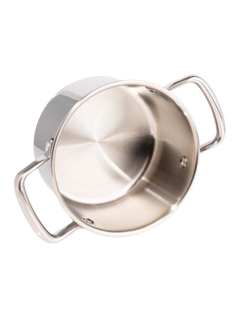 Посуда имеет плоское, утолщенное дно, состоящее из 3-х слоев металла: индукционного, термоаккумулирующего и проводящего, которое равномерно распределяет тепло и препятствует подгоранию пищи. Это позволяет использовать посуду на любых видах плит, в том числе индукционных и стеклокерамических.