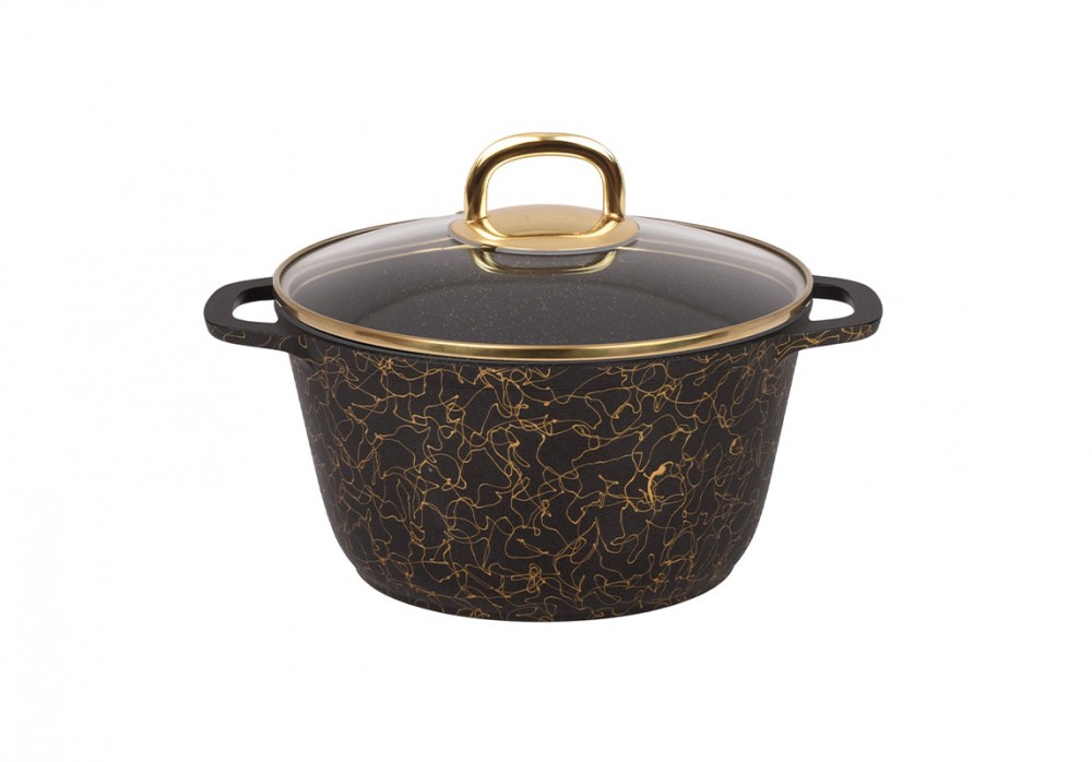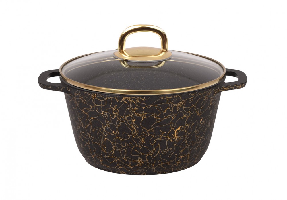 Кастрюля 4,5л со стеклянной крышкой, АП линия "Грация" (черный/золото) кчз45а