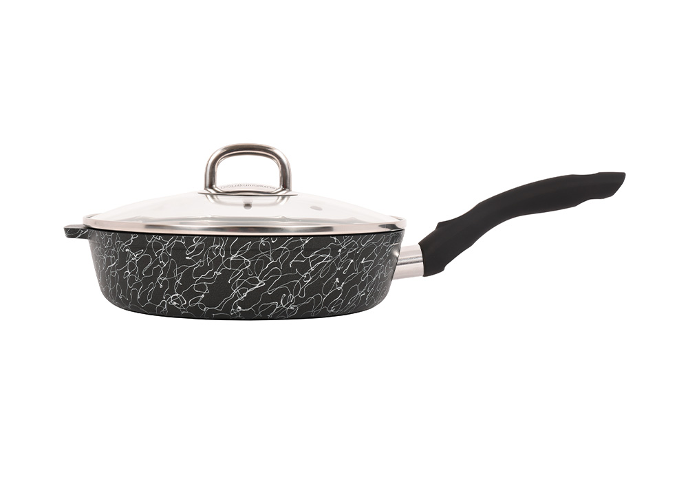 Сковорода глубокая 240мм с ручкой,со стеклянной крышкой,АП линия "Грация" (черный/серебро) сгчс241а