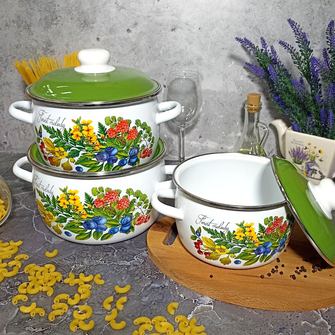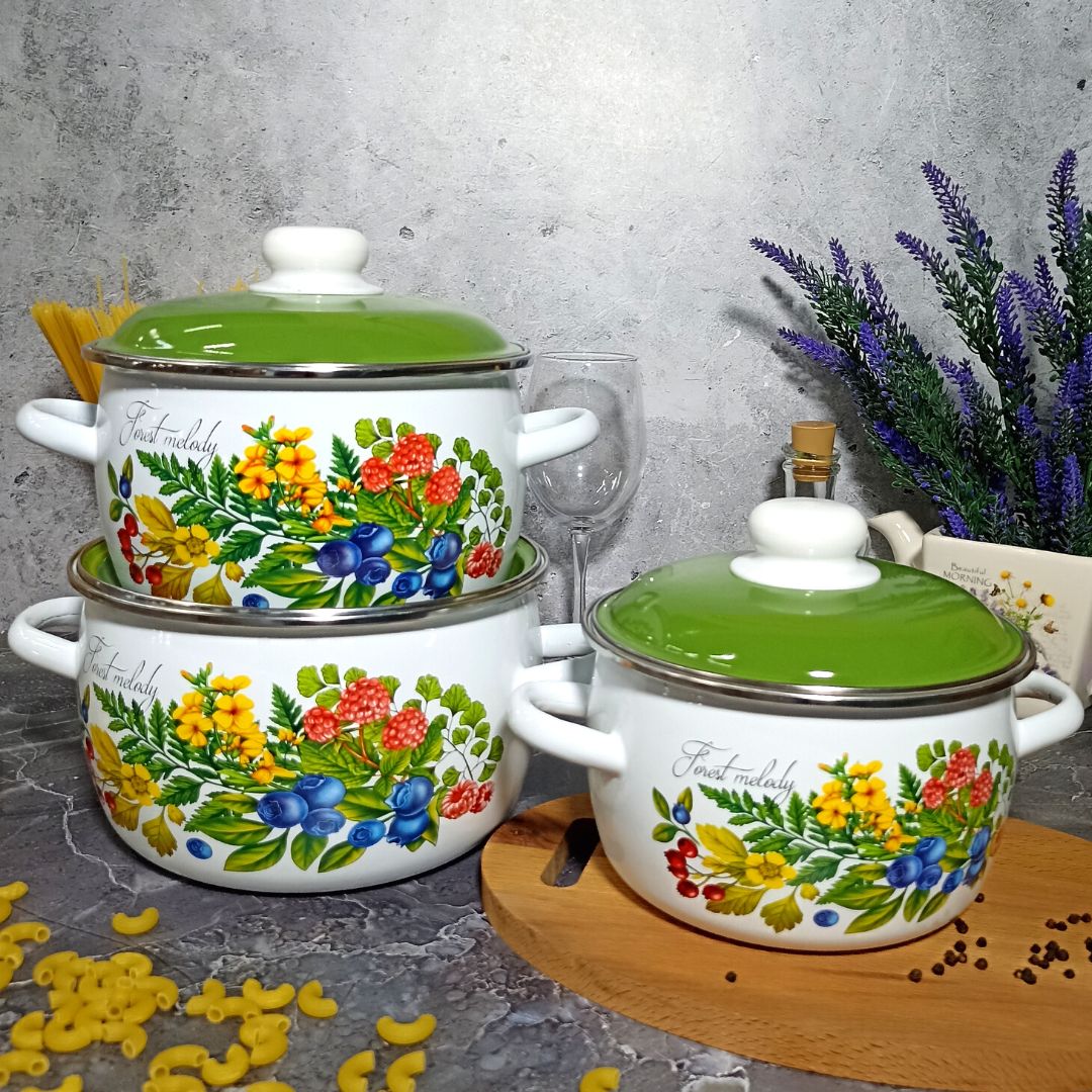 Набор из 3 предметов №02 "Лесная мелодия" - это стильный и функциональный комплект посуды для приготовления пищи. Белоснежный дизайн с изображением лесной мелодии придает набору особый шарм и уют.