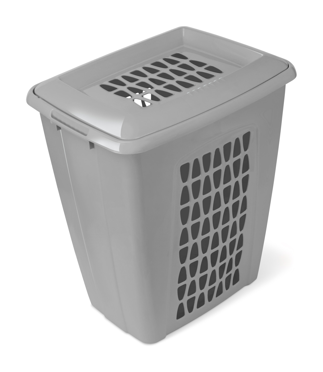 Корзина для белья «Молетта» прямоугольная 45л с крышкой пыльно-серая С701ПСЕР Корзина для хранения белья перед стиркой поможет функционально организовать пространство ванной комнаты. Крышка скрывает содержимое корзины, а также может служить дополнительным местом для хранения легких туалетных принадлежностей. Перфорированные стенки обеспечивают проветривание белья. Корзина изготавливается из прочного полипропилена, отвечающего требованиям влажного помещения.