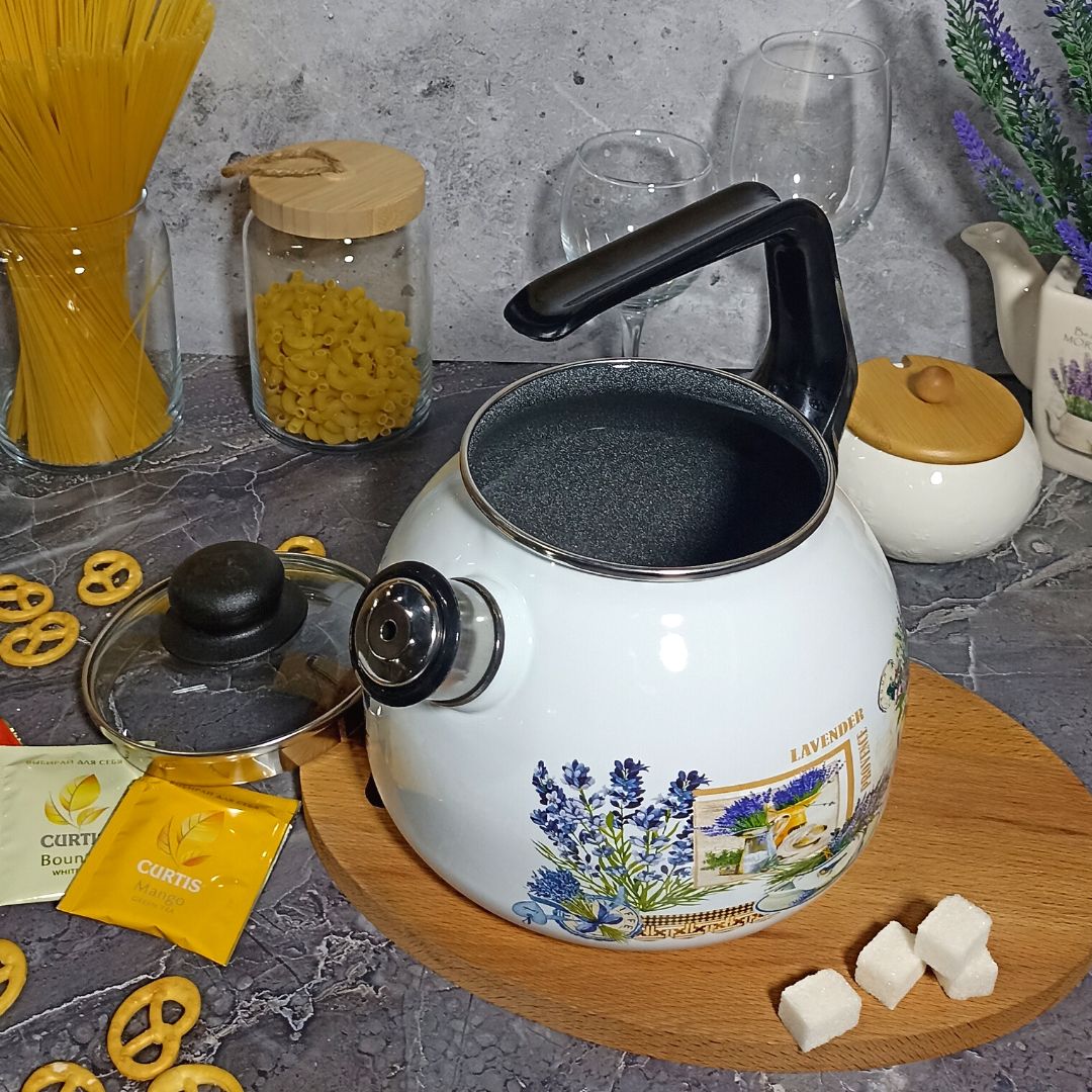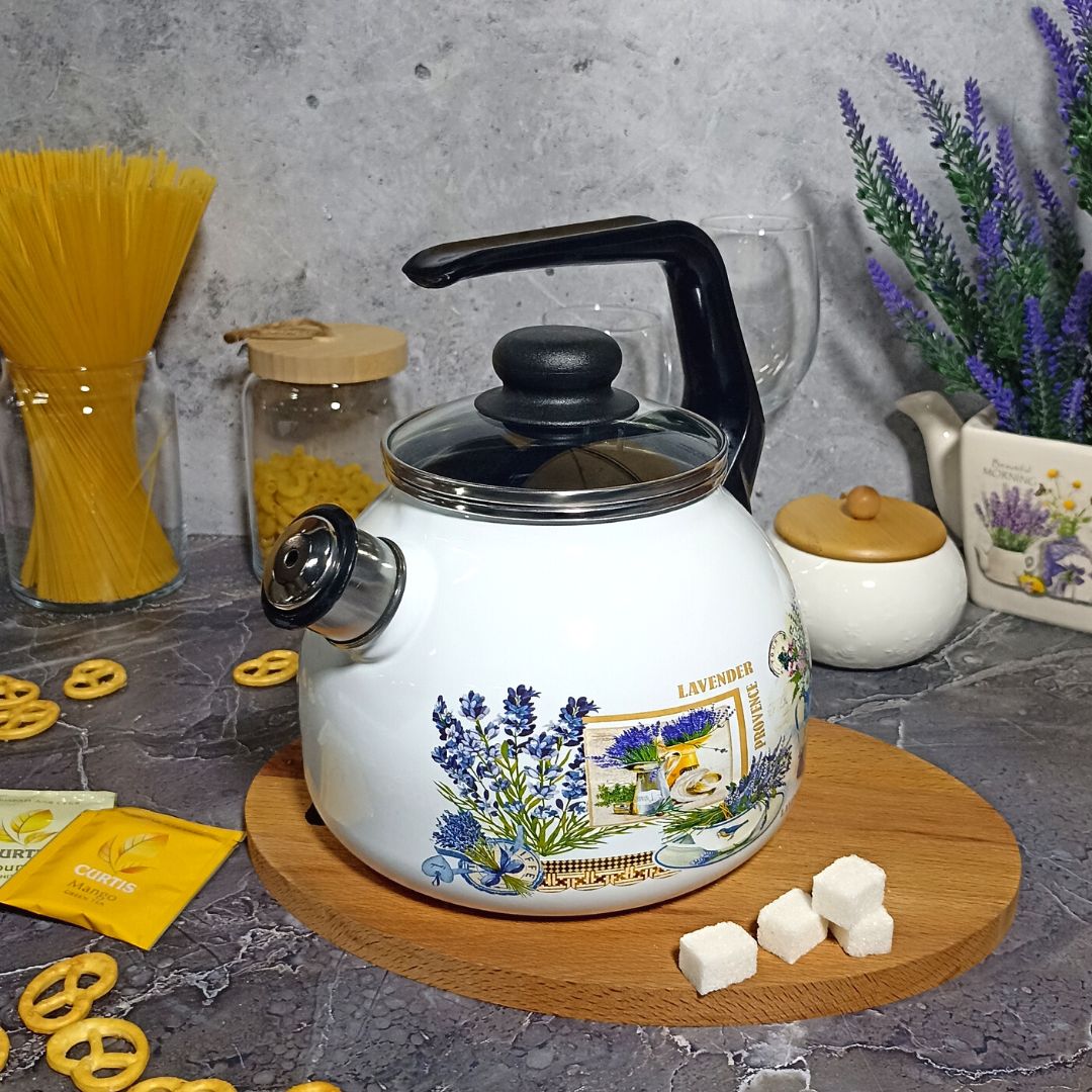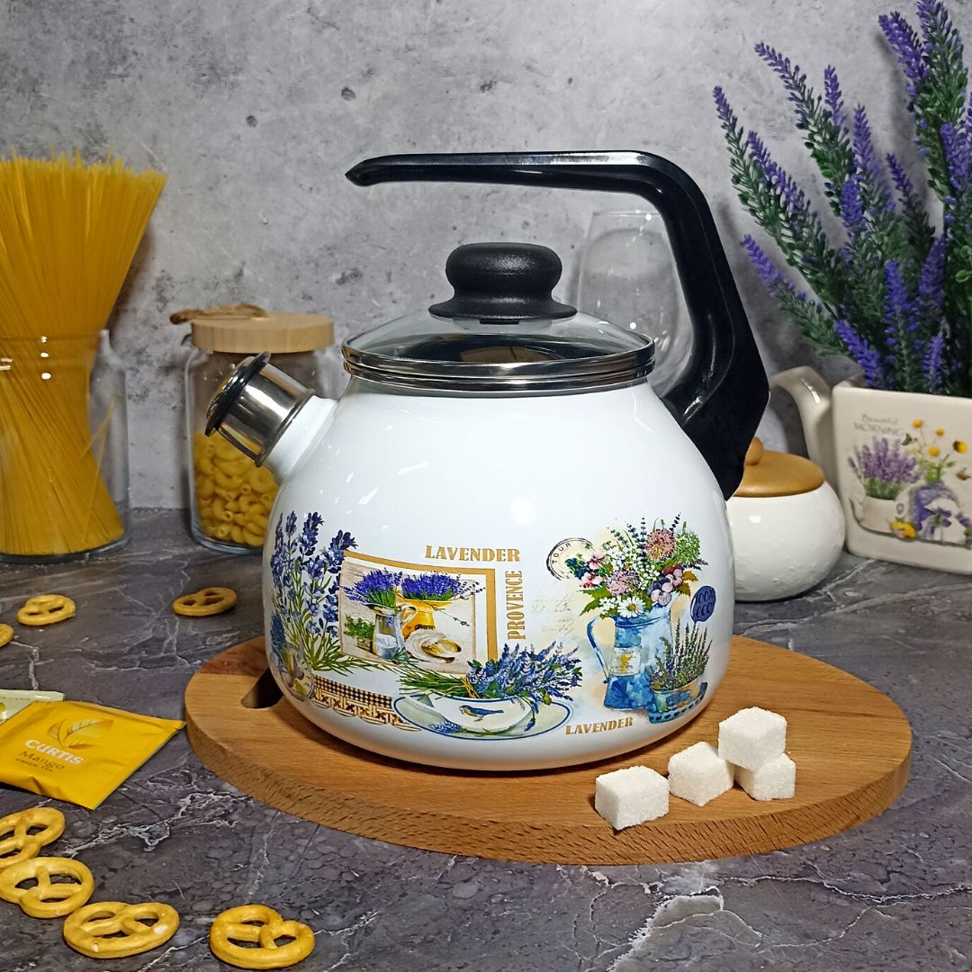 Чайник для плиты 3,0л сф. со свистком 4с209я Горная лаванда белосн.