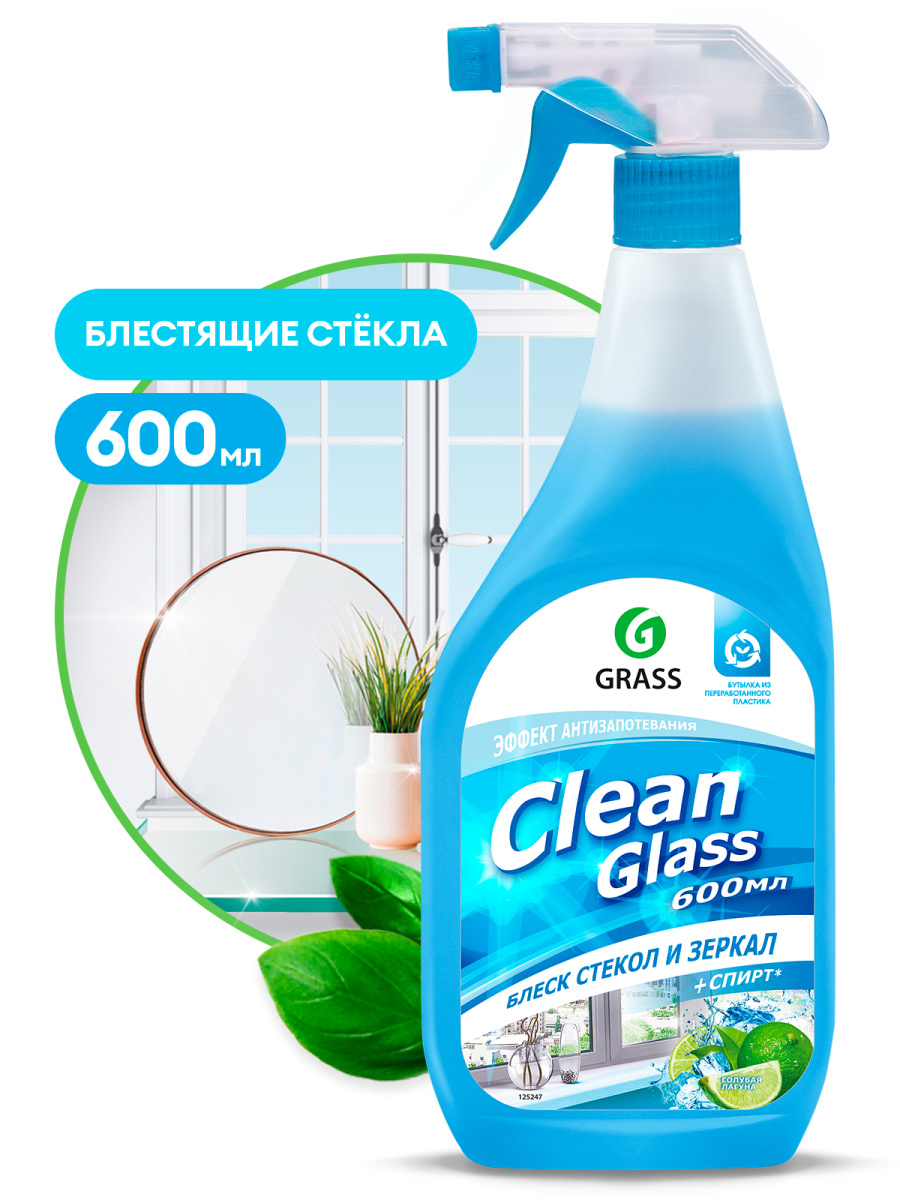 Средство чистящее блеск стекол и зеркал (голубая лагуна) GRASS Clean Glass 600мл 125247