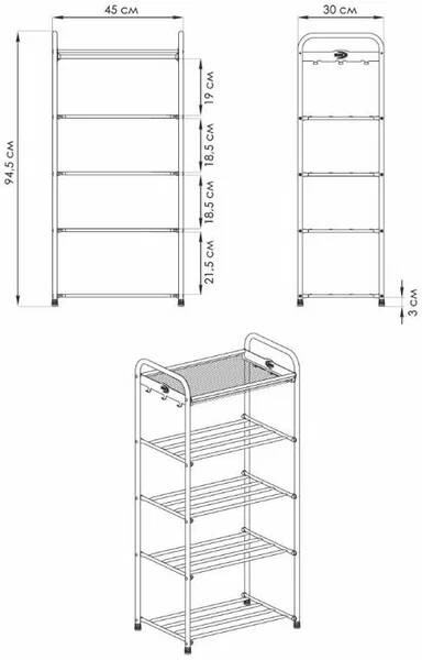Подставка для обуви полочная 40 см,Обувница-этажерка для обуви ЗМИ Альфа 15 5 полок 8 пар.Современный дизайн обувницы впишется в любой интерьер.