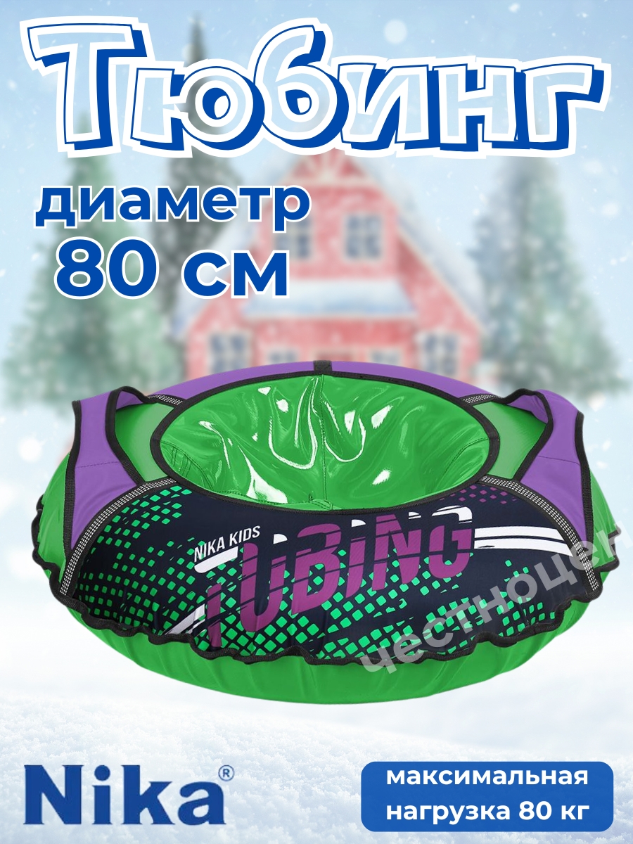 Тюбинг для активного зимнего отдыха с ярким неоновым рисунком. Для детей от 5 лет.