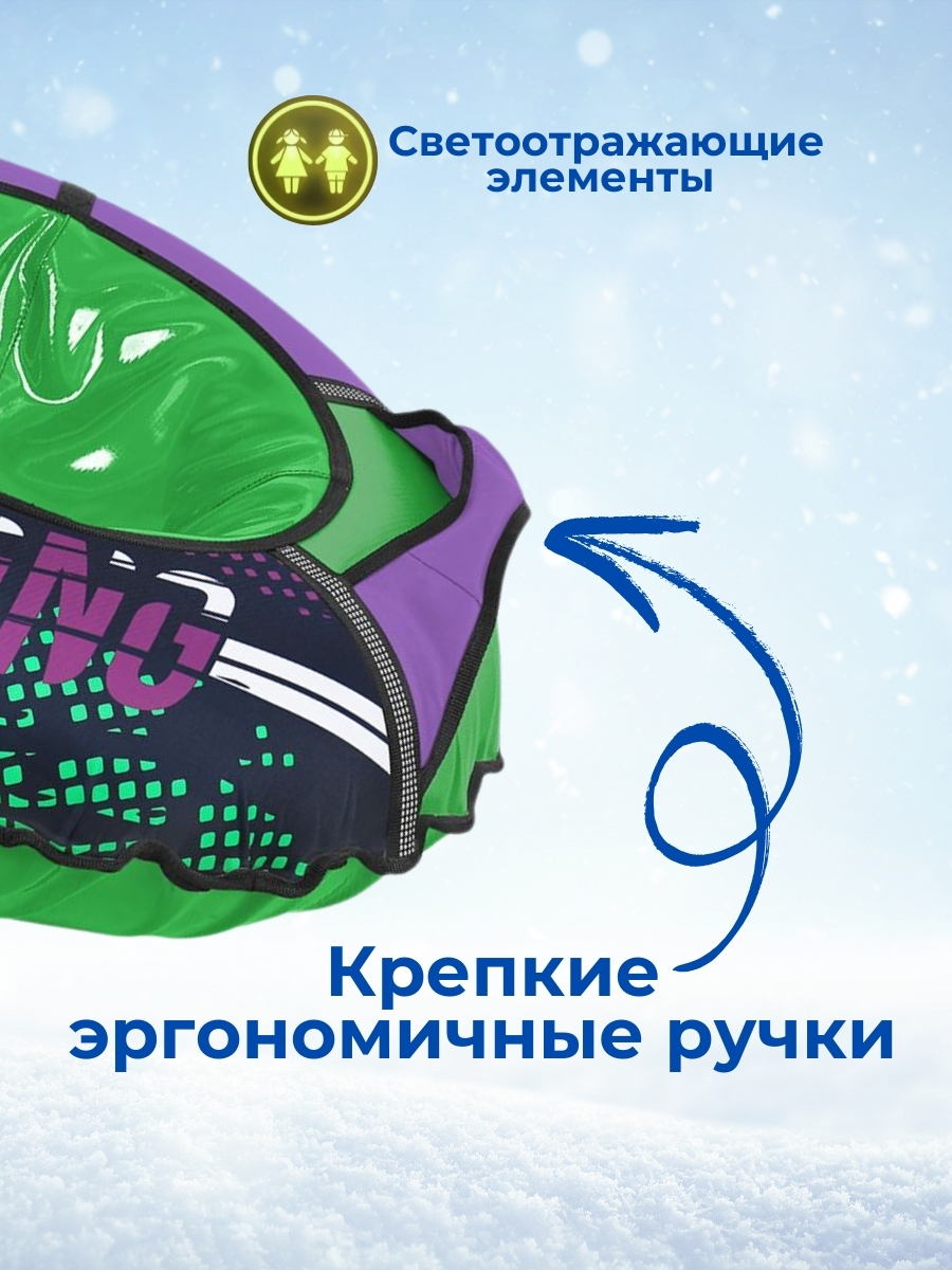 Тюбинг для активного зимнего отдыха с ярким неоновым рисунком. Для детей от 5 лет.