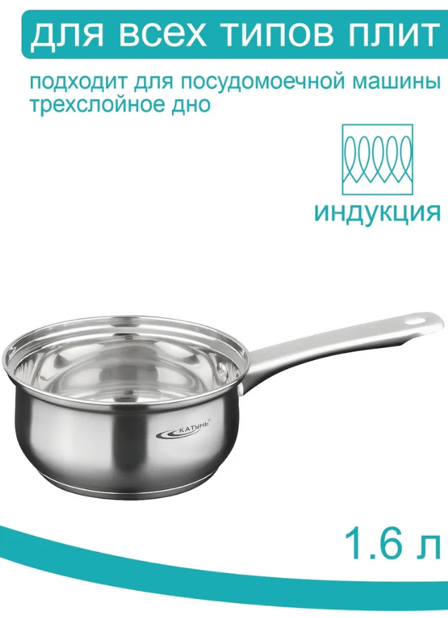 Ковш 1,6 л серии "Гретта" изготовлен из высококачественной нержавеющей стали. Благодаря прочному трехслойному капсульному дну, равномерно распределяющему тепло и прекрасно сохраняющему температуру, приготовление пищи происходит быстрее. Крышка из термостойкого закаленного стекла снабжена металлическим ободком для прочности и более плотного закрывания, а также пароотводом. Металлическая ручка ковша прикреплена к корпусу методом клепочной фиксации, что обеспечивает минимальный нагрев, прочность и надежность. Форма ковша грушевидная, наружная полировка зеркальная. Подходит для всех типов плит, кроме индукционных. Возможна чистка в посудомоечной машине.