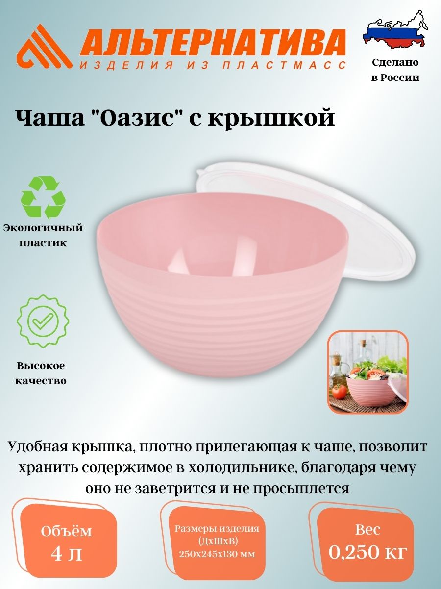 Чаша «Оазис» - универсальное изделие, которое будет незаменимым помощником для хозяйки. Процесс готовки – это не только творчество, созидание и приятные эмоции. Также зачастую это: горы посуды, которую нужно перемыть; это необходимость компактно уложить приготовленное в холодильник и т.д. Данная чаша решает все перечисленные проблемы.