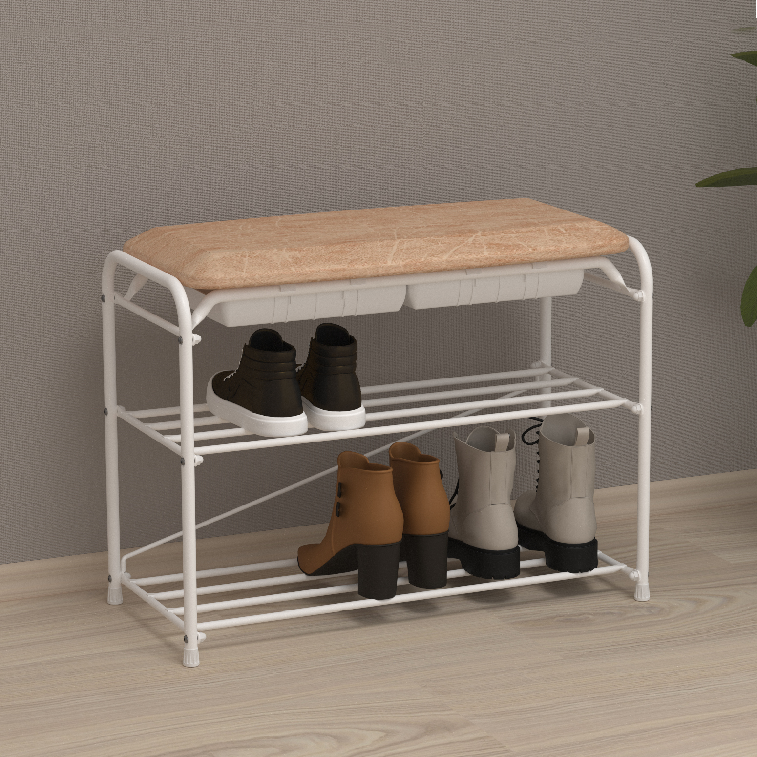 Обувница с мягким сиденьем и ящиком от российского производителя "ЗМИ" создана для компактного хранения обуви в доме или офисе.Обувница содержит 2 яруса, на которых с лёгкостью помещается до 6 пар обуви. Сиденье из прочной винилискожи, обладает повышенной износоустойчивостью. Под сиденьем расположен ящик для мелочей. Долговечная, благодаря каркасу и полкам из стали с полимерно-порошковым покрытием. Пластиковые заглушки на ножках защитят пол от царапин. Допустимая нагрузка на полку до 8 кг, на сиденье до 120 кг. Собирается легко, благодаря пошаговой инструкции.