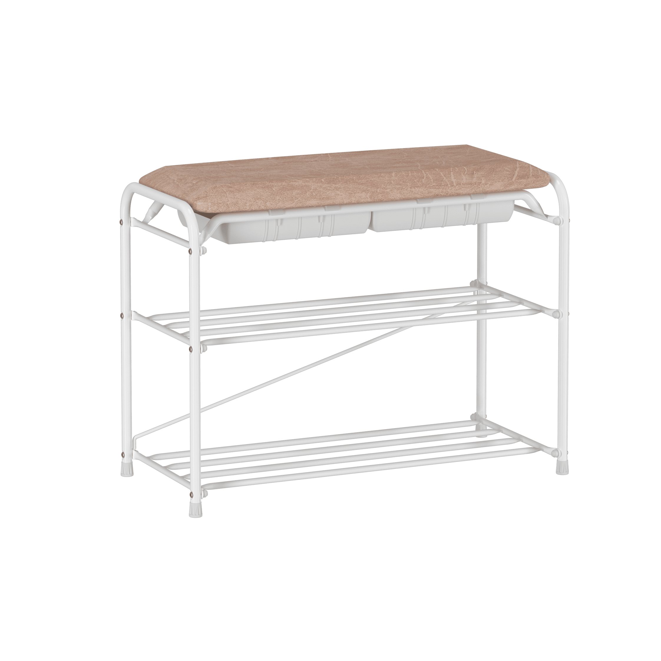 Подставка для обуви "Альфа 23" с сиденьем и ящиком (Белый) (3-х полочная,60см)
