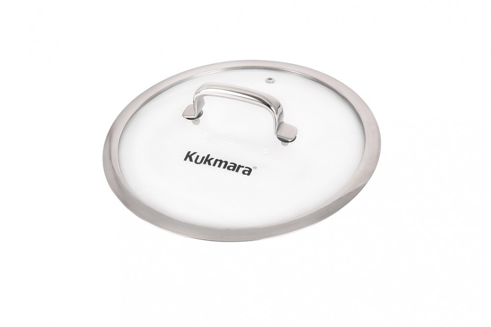 Посуда комплектуется стеклянной крышкой с отверстием для выхода пара. Крышка выполнена из высококачественного термостойкого стекла. Идеально прилегает к краям посуды и предотвращает проливание жидкости. Широкий металлический обод защищает крышку от сколов и внешних повреждений. Имеется возможность наблюдать процесс приготовления блюд.