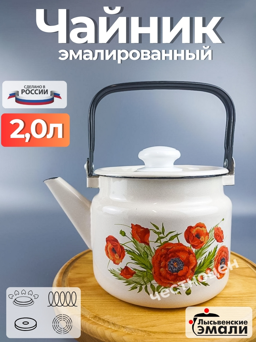 Чайник Лысьвенские эмали 2 л выполнен из высококачественного стального проката, покрытого двумя слоями жаропрочной эмали.