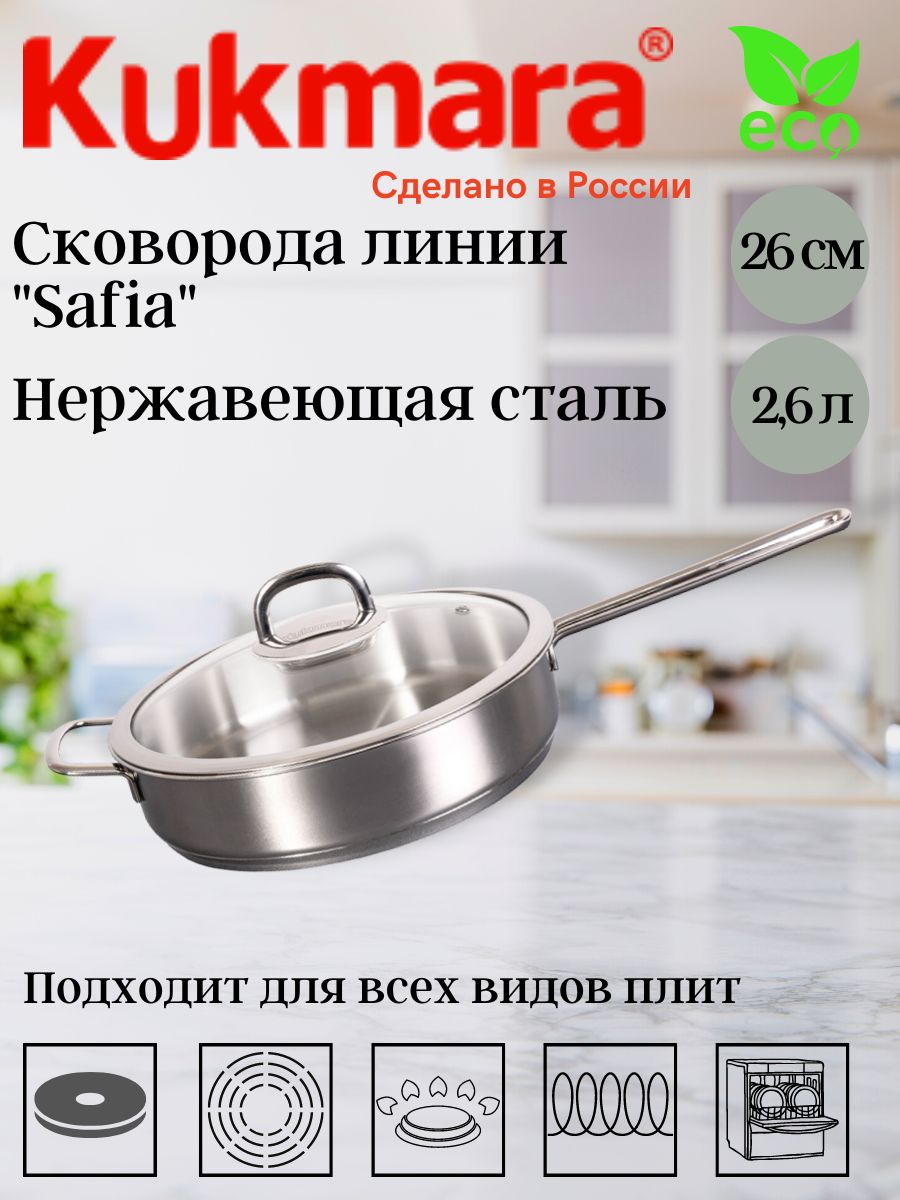 Сковорода линии "SAFIA" 2,6л, д,26см, со стеклянной крышкой SF-FP2626G