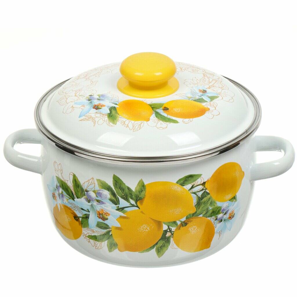Кастрюля 2л сферическая ободком, белая, Лимоны 3MC161P