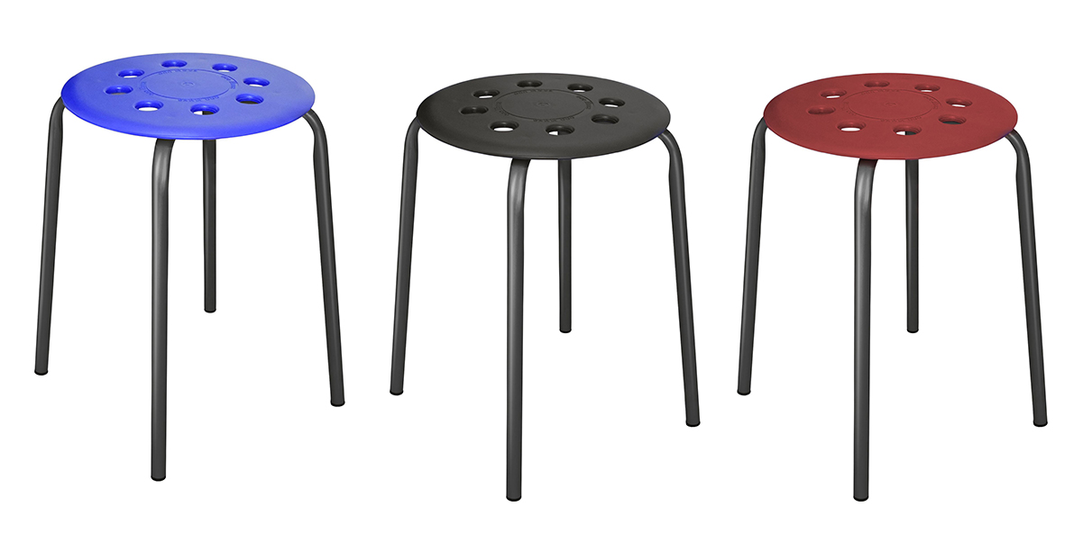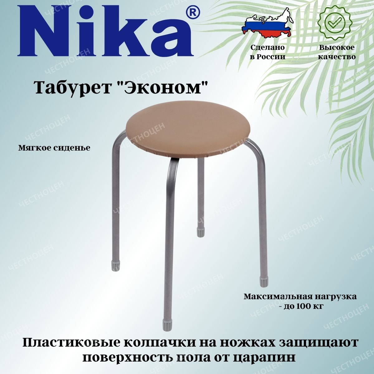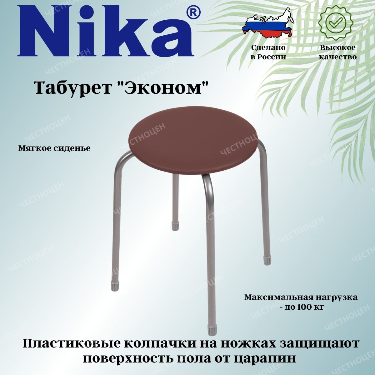 Табурет на четырёх опорах с мягким сиденьем из винилискожи. Материал сиденья устойчивый к истиранию и лёгкий в чистке.