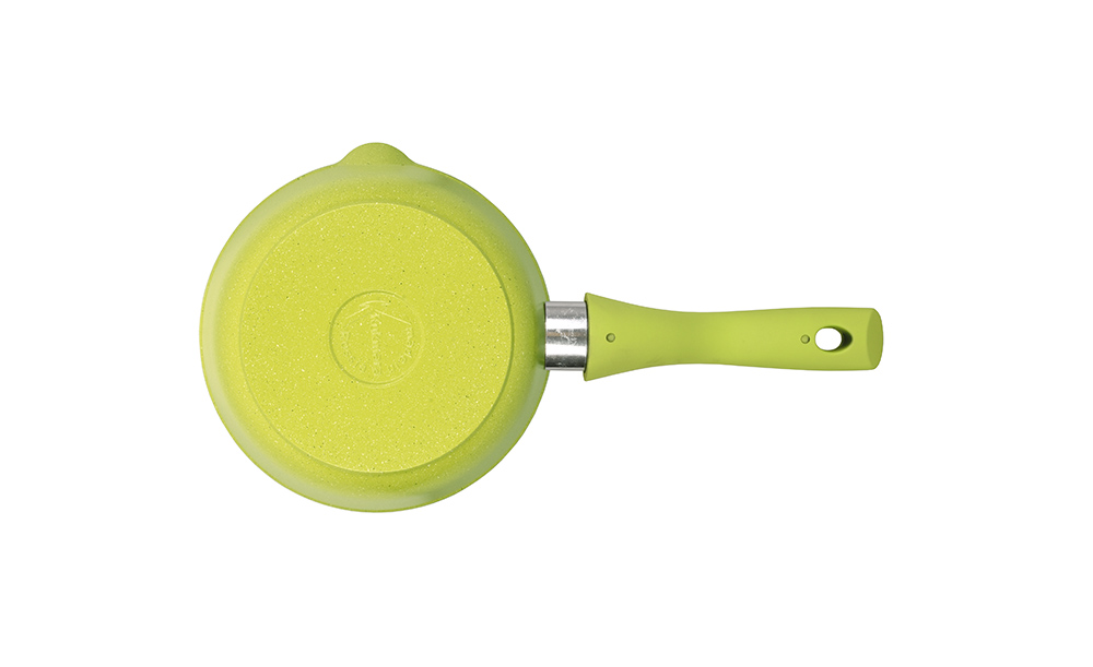 В ковше из литого алюминия с антипригарным покрытием коллекции Trendy style совершенно всё: современный дизайн, идеальные пропорции, безупречная подборка палитры цвета ручки и корпуса, расширенный функционал.Термостойкое декоративное покрытие на внешней поверхности ковша надежно защищает его дно и стенки от воздействия моющего средства при мойке в посудомоечной машине.Покрытие на внутренней поверхности ковша обладает безупречными антипригарными свойствами, допускает использование только деревянных или силиконовых предметов.