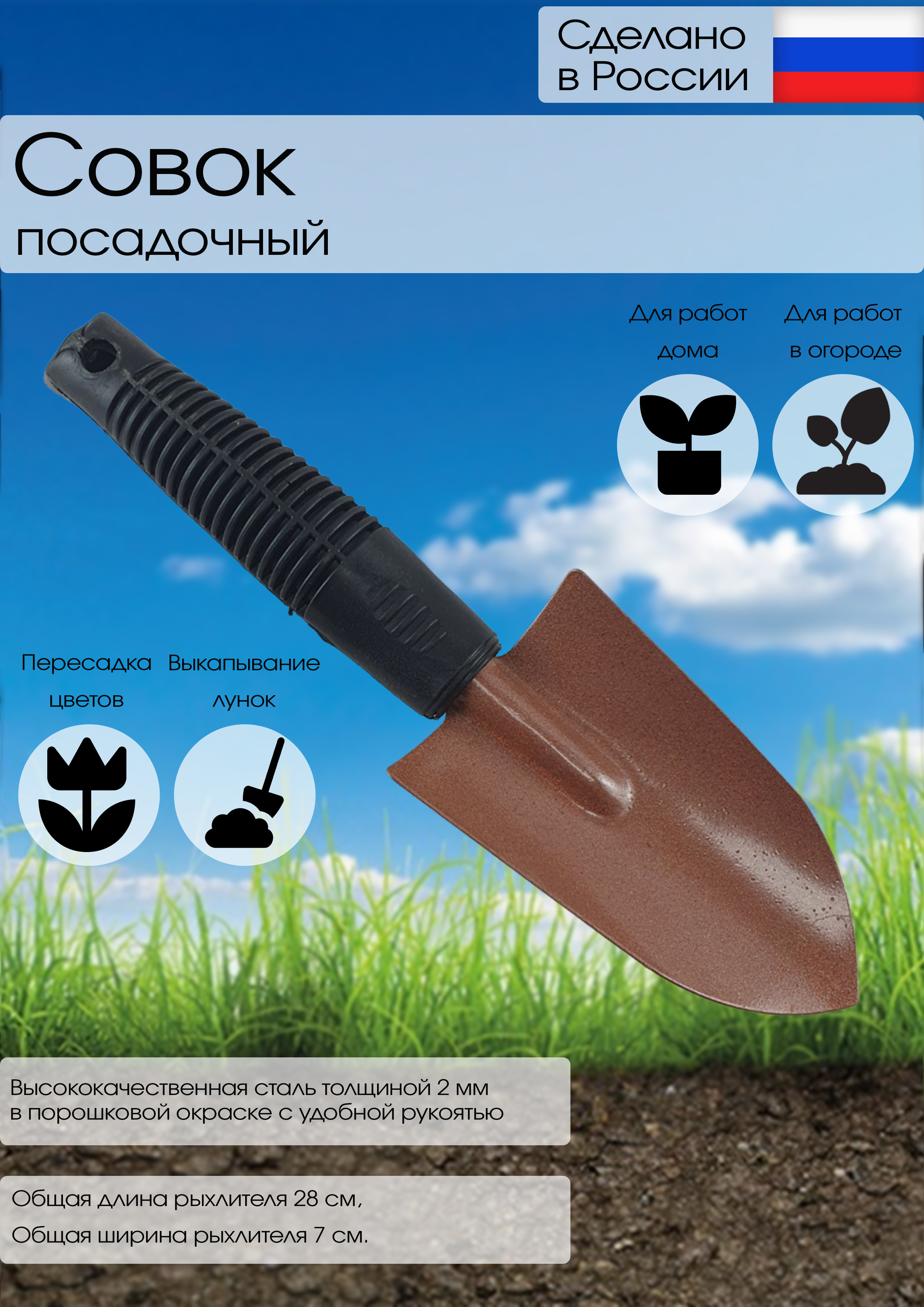Совок посадочный порошковой окраски малый с пластмассовой ручкой (1-1,2мм) 01516