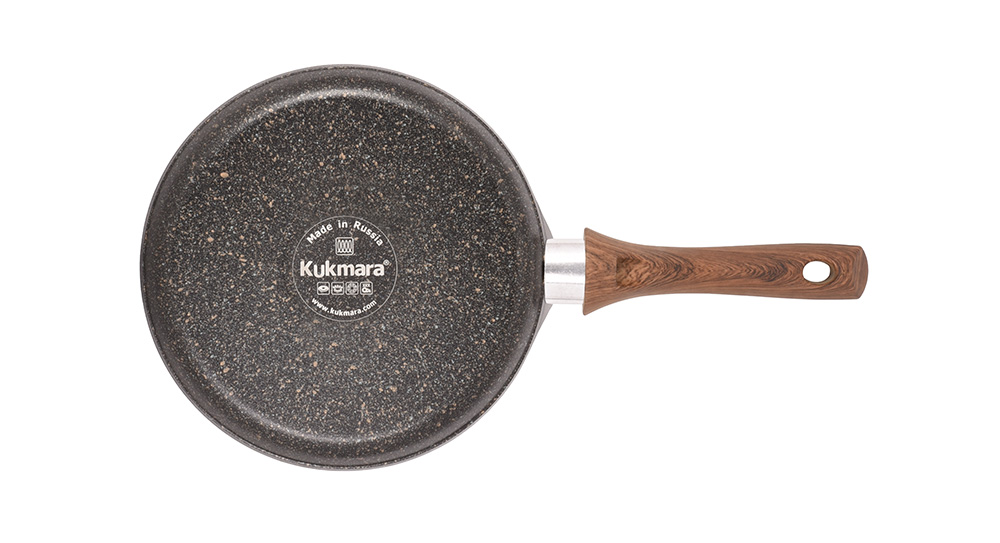 Блинная сковорода Kukmara из литого алюминия имеет отличные теплораспределительные и теплоаккумулирующие свойства, и блинчики в ней получаются пропеченными и ароматными.