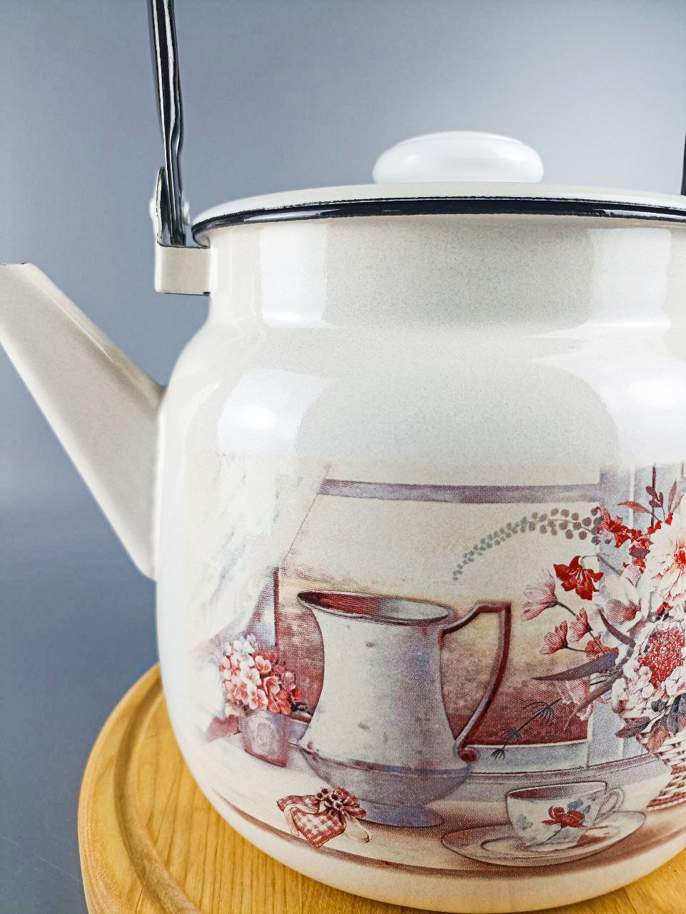 Чайник для плиты Лысьвенские эмали выполнен из высококачественного и надежного материала — эмалированной стали. Эргономичная подвижная ручка. Дно емкости подходит для всех типов кухонных плит. Объем чайника составляет 3.5 л.