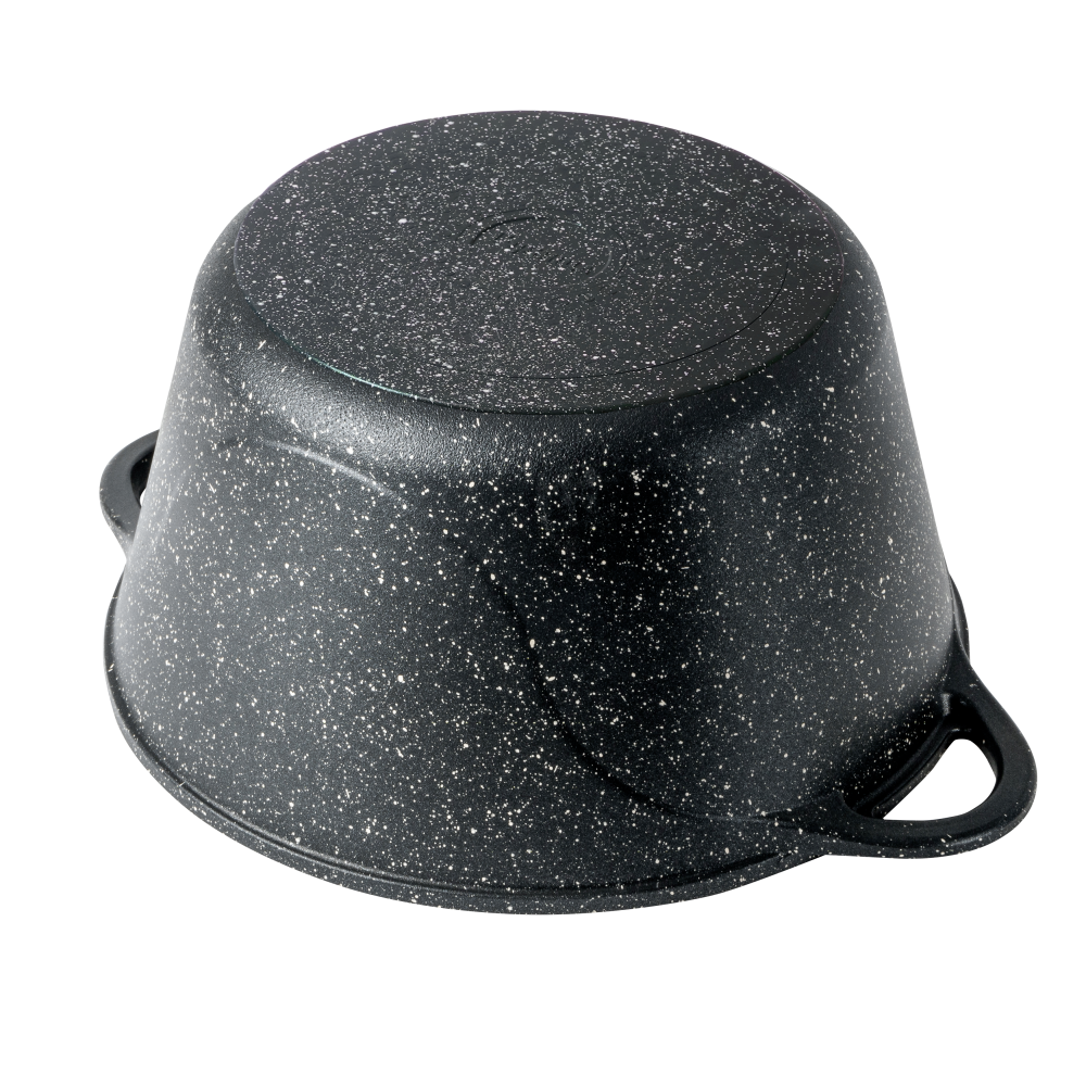 Сочетание классического черного цвета с белым крапом подчеркивает такие качества посуды, как высокопрочность и долговечность, подобно настоящей породе граниту.