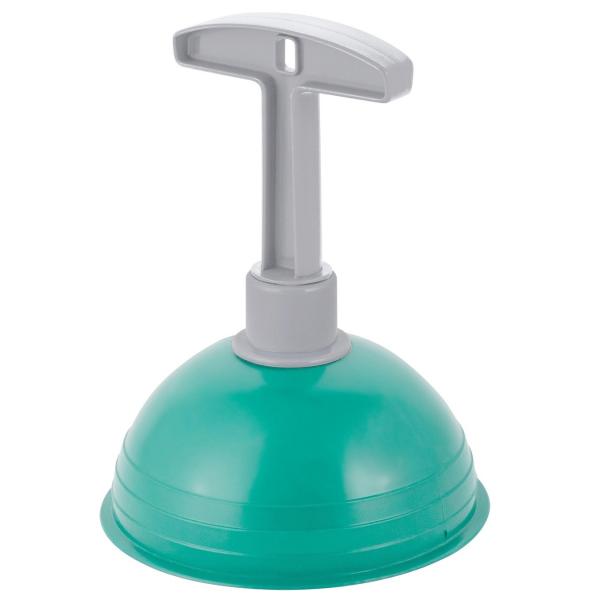 Высота вантуза всего 17,5 см, что позволяет хранить его на невысоких полках ванной комнаты или в шкафу под раковиной. На ручке имеется отверстие для хранения вантуза на крючке.