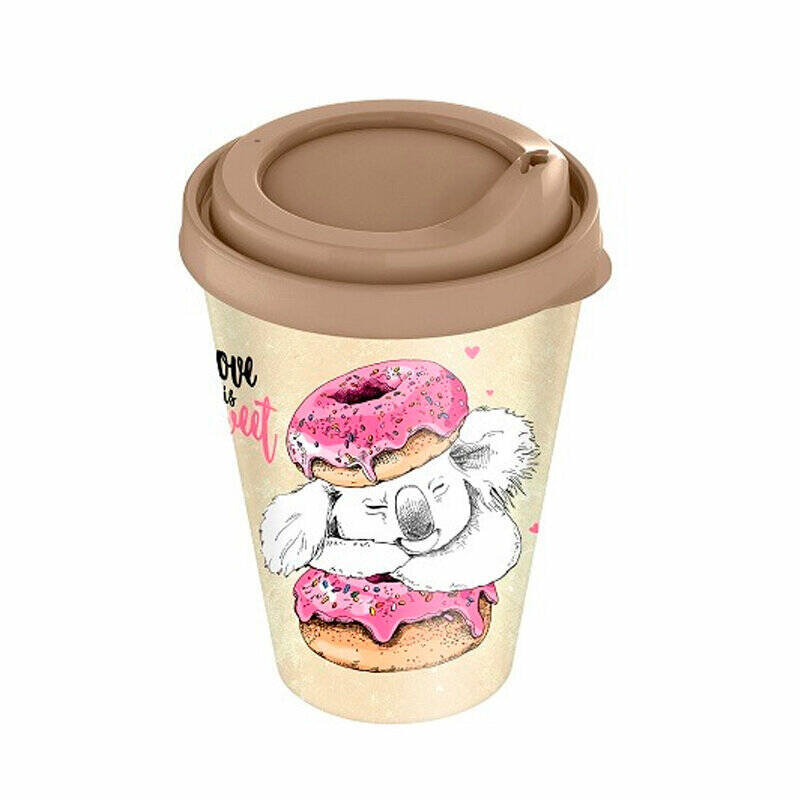 Стакан "IZI-GO" с крышкой 420мл с декором (бежевый) 222101427/01