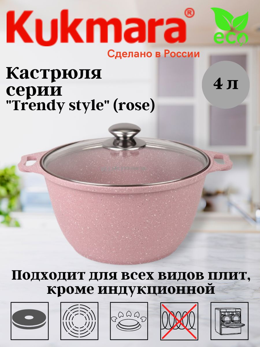 Кастрюля 4л со стеклянной крышкой,АП линия "Trendy style" (rose) к41tsr