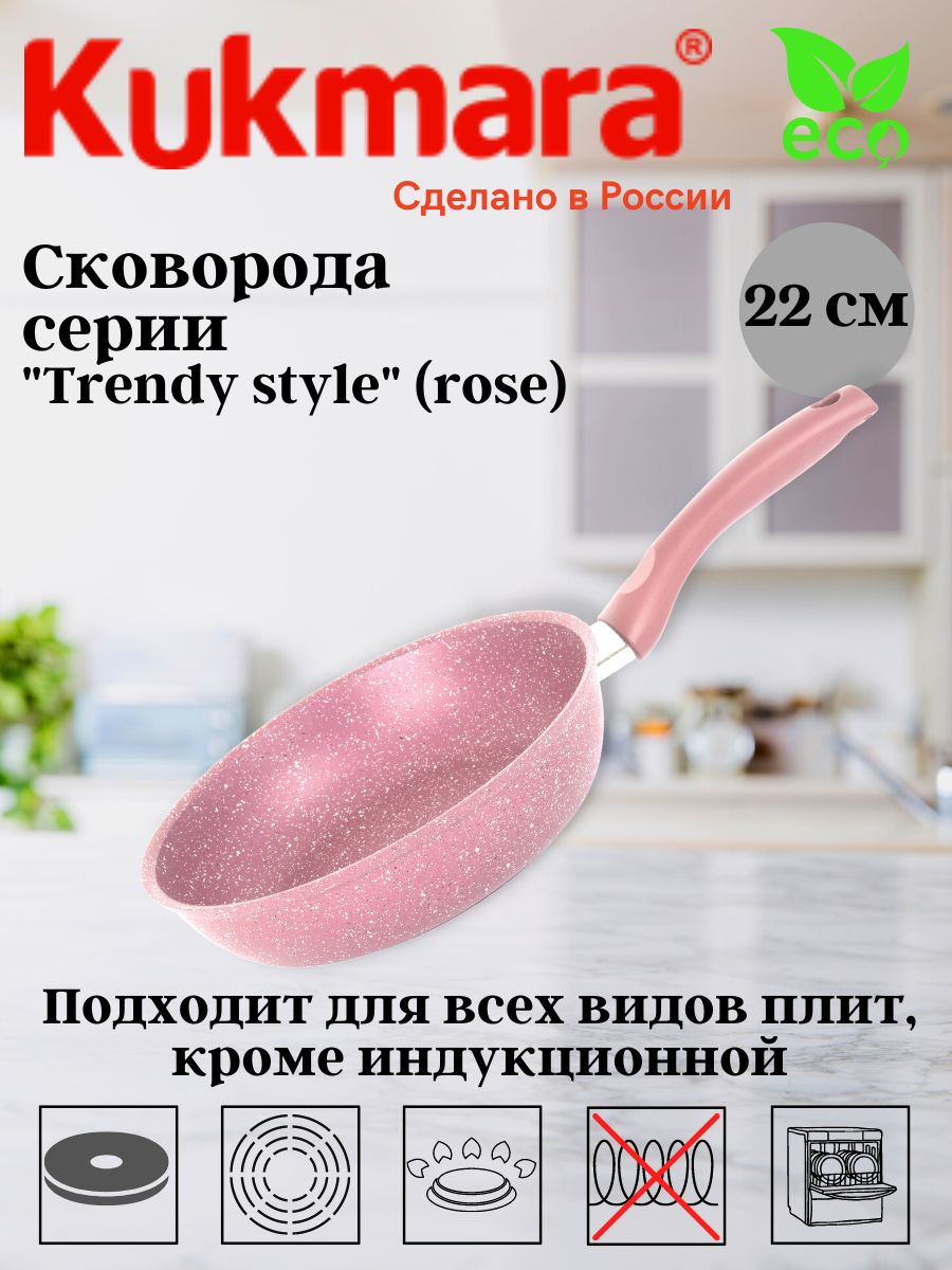 Сковорода 220мм с ручкой,антипригарное покрытие, линия "Trendy style" (rose) 220tsr