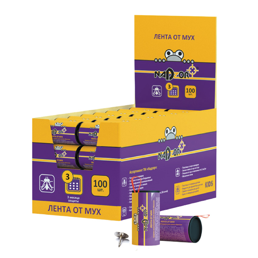 Лента липкая от мух 100шт в шоубоксе NADZOR с кнопкой IMP100P