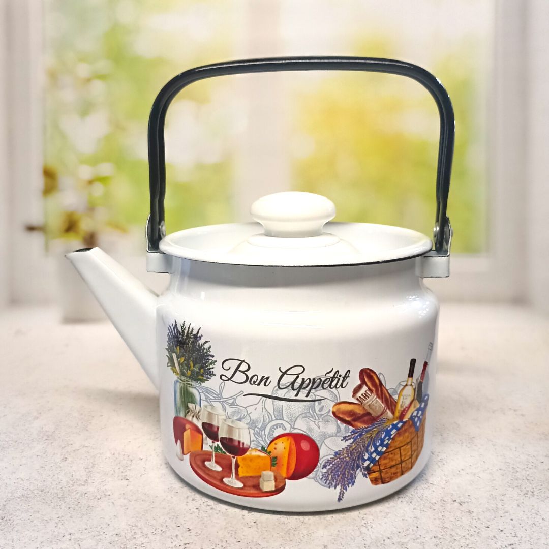 Чайник для плиты "Пикник" объемом 2,0 литра станет незаменимым помощником на вашей кухне. Изготовлен из эмалированного материала, что обеспечивает его долговечность и прочность.